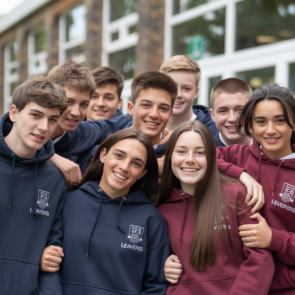 Celebrate Year 11 GCSEs or Year 13 A-Levels with premium leavers hoodies your students will actually want to wear. Nicknames, inside jokes, quality fabrics – everything older students expect.